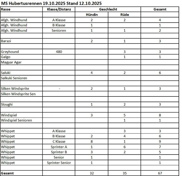 Wichtig für unsere Whippet - und Windspiel Rennteilnehmer aus dem Ausland: